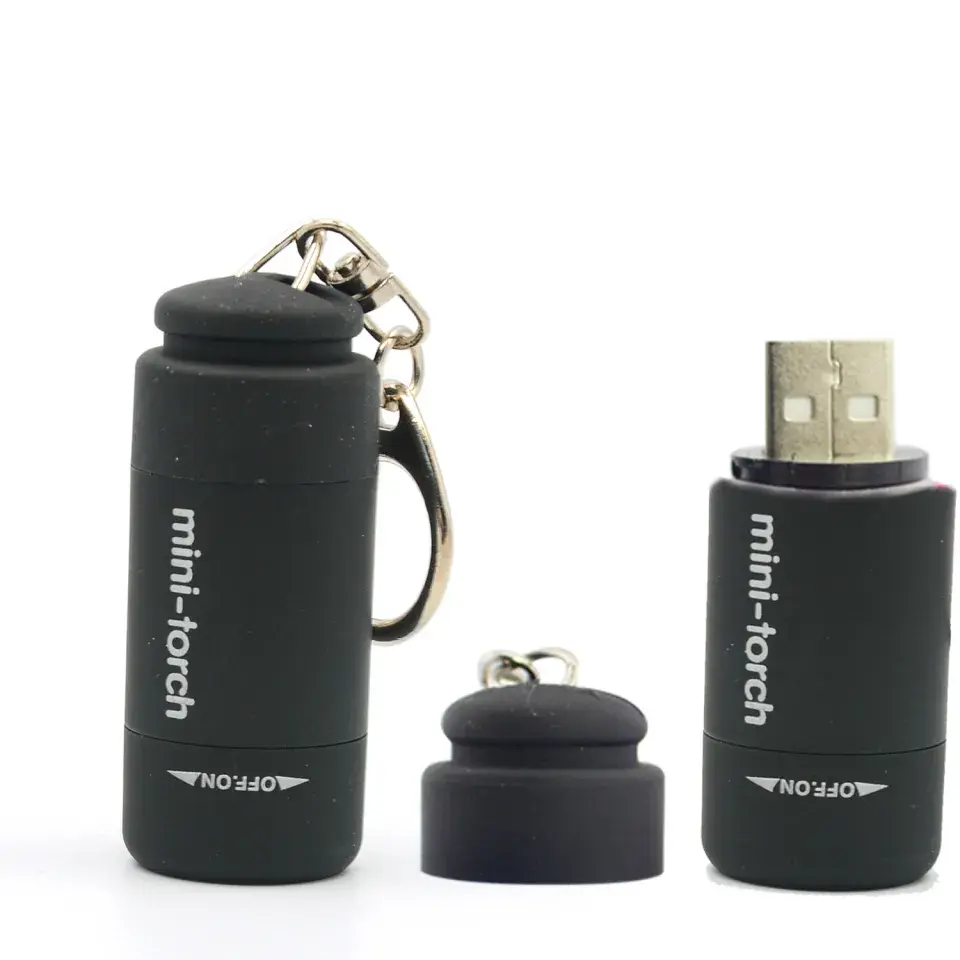 SIMPLE TWIST FUNCTION; Twist the top to switch on and off USB RECHARGEABLE; To charge the torch, twist off the end attached to key chain to expose the USB charger